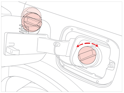 inside the vehicle (at floor level, left of Driver’s Seat). Tighten for ONE CLICK to prevent Malfunction Indicator