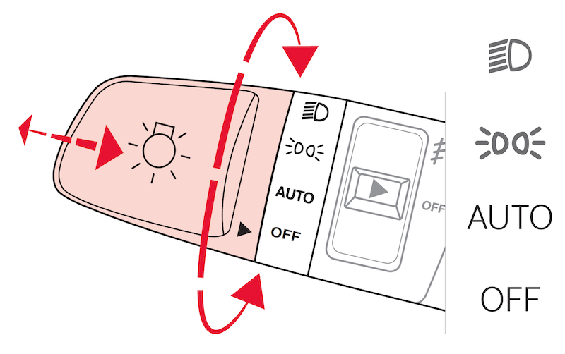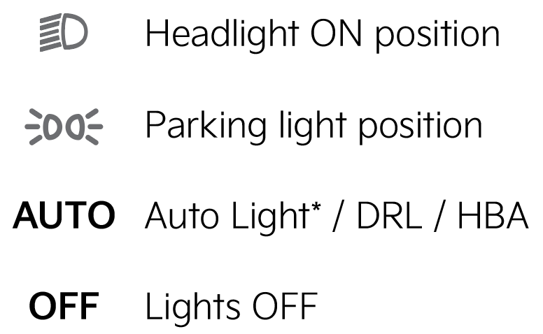 When the light switch is in the AUTO Light position, the tail lights and headlights will turn ON/OFF automatically, depending on the amount of light outside the vehicle.