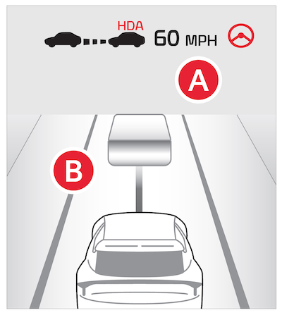 . If conditions are not met, HDA will be in standby mode and the indicator will illuminate gray. When HDA is operating, and if both lanes are recognized, the Instrument Cluster image will show the lanes illuminated gray