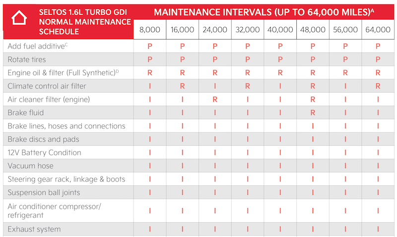 Check your Maintenance Schedule or schedule an appointment with a dealer using your Kia Connect* account by logging into your Kia Access App* or your account on https://owners.Kia.com (Vehicles equipped with Kia Connect* only)