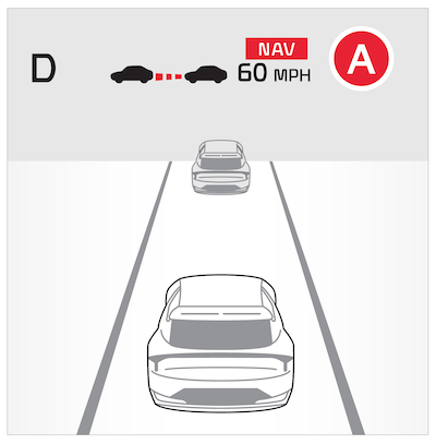 When SCC is on and operating, the vehicle is driving on limited/controlled access highways, and NSCC is turned on, NSCC is enabled and the NAV icon