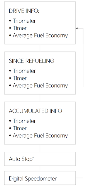 To cycle through the different Instrument Cluster’s LCD Modes, press the Mode button ![]()