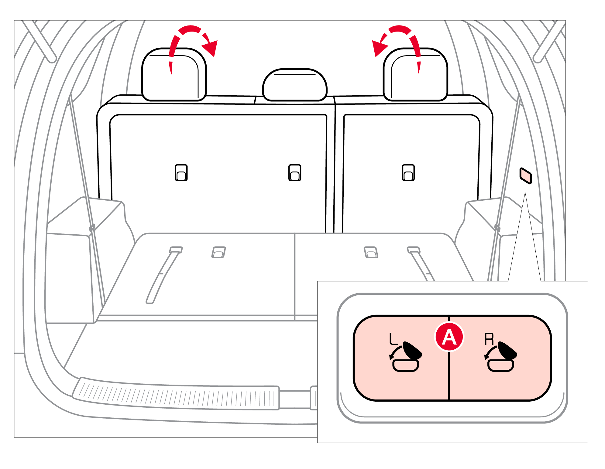 Buttons located on rear quarter-trim panels