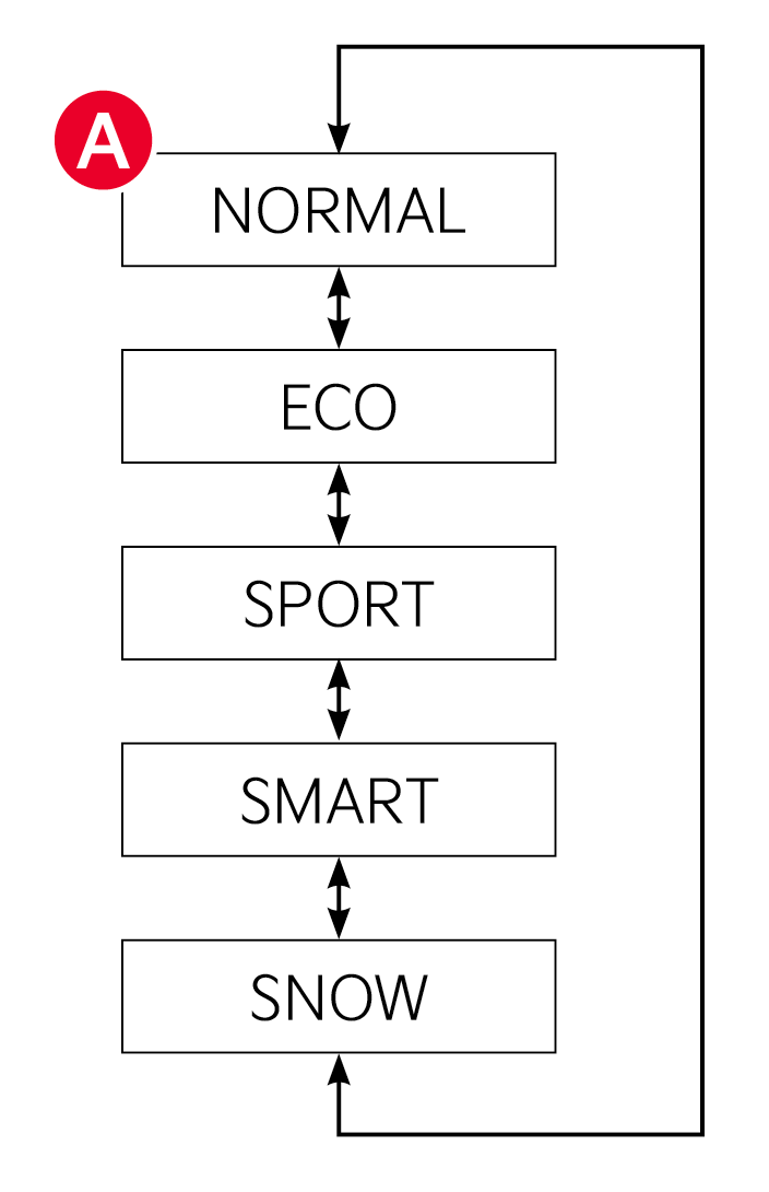 The drive modes may be changed according to the driver’s preferences or road conditions. To cycle through the drive modes