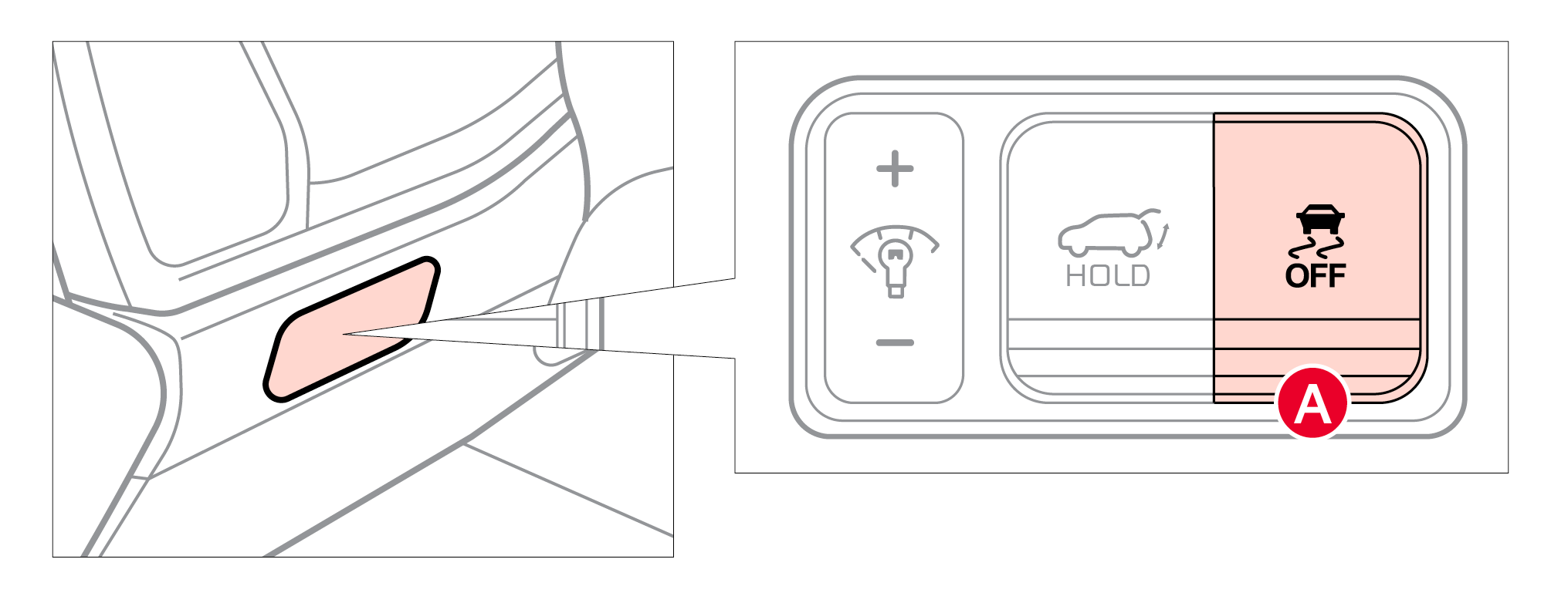 Press the ESC OFF button to turn Traction Control OFF/ON. To turn OFF both the Traction Control and Stability Control, press and hold for more than 3 seconds. Press it again to turn ON.