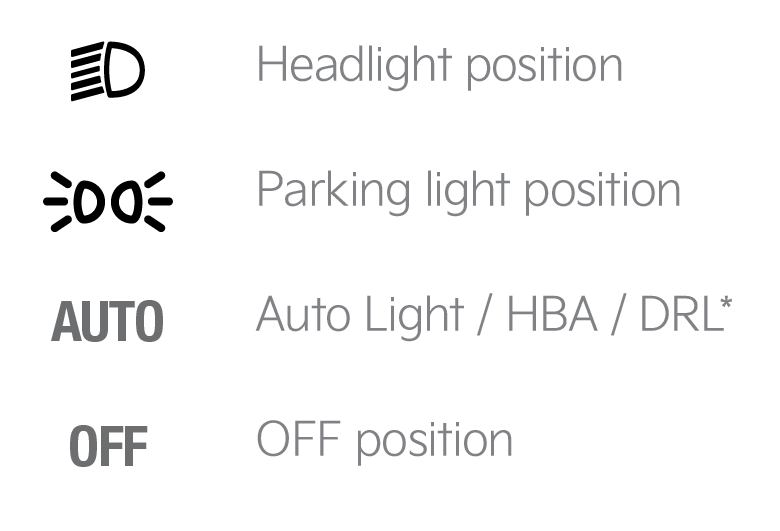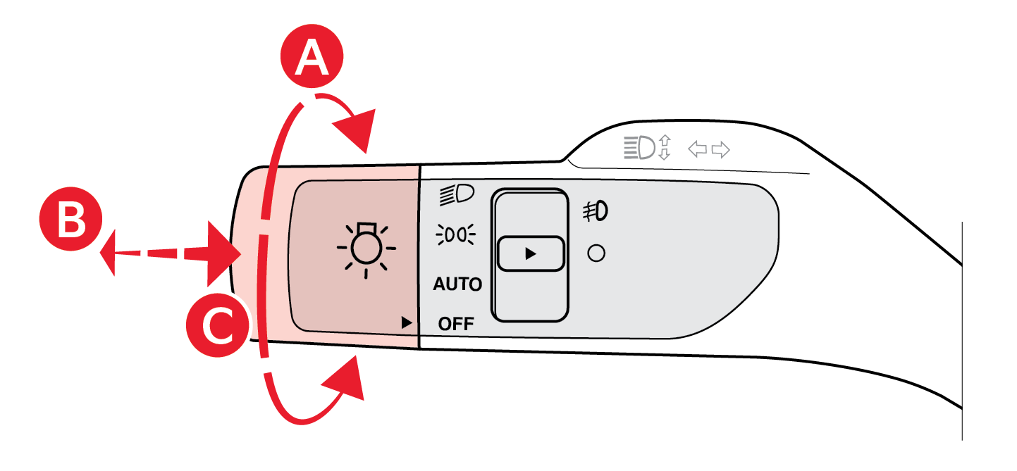 When the light switch is in the AUTO Light position, the tail lights and headlights will turn ON/OFF automatically depending on the amount of light outside the vehicle.