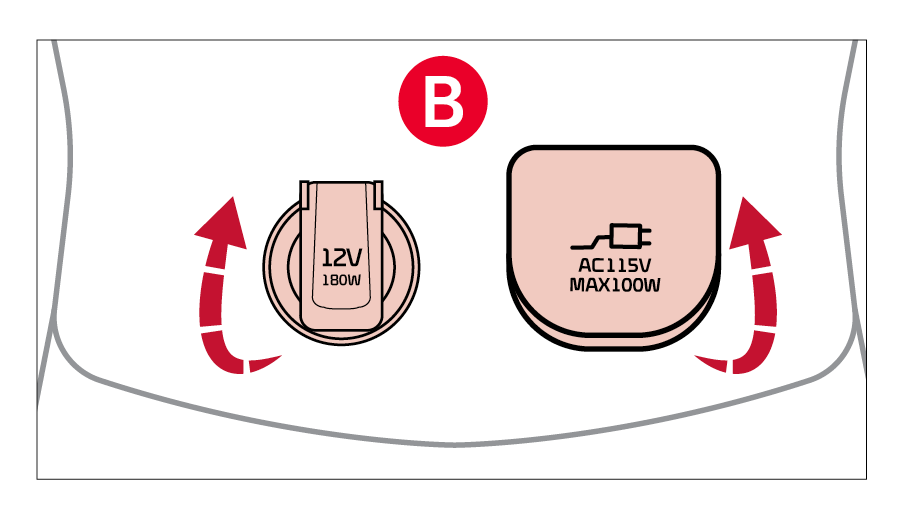Power Outlets: Use the power outlets for mobile phones and other devices designed to operate on a 12V (180W max) power outlet.