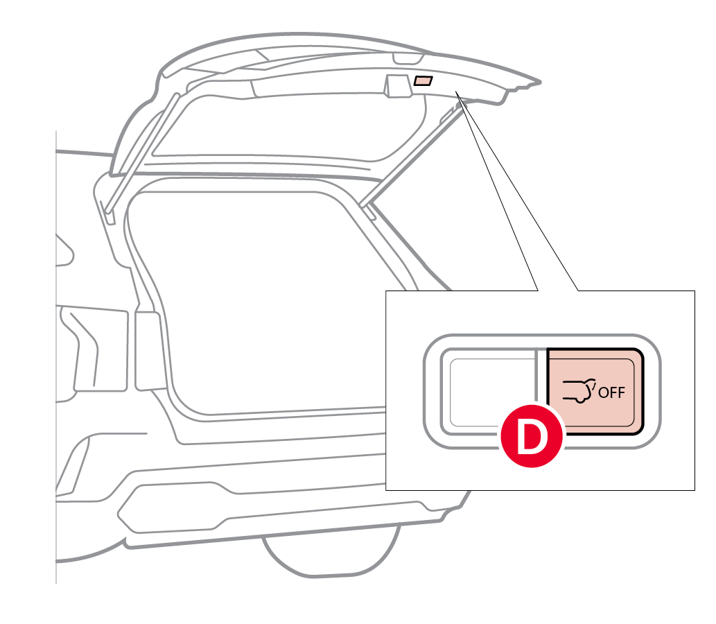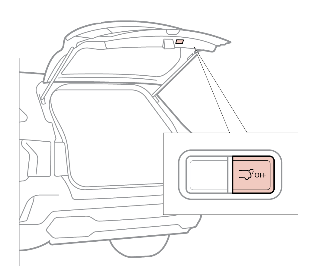 To turn OFF the Power Liftgate Auto Open feature: Press the Automatic Close Release button, on the inside of the Liftgate, while the Liftgate is open.