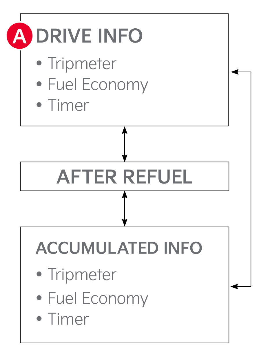 to enter. To cycle through and select the different screens (Fuel Economy, Accumulated Info, Drive Info), press the OK button