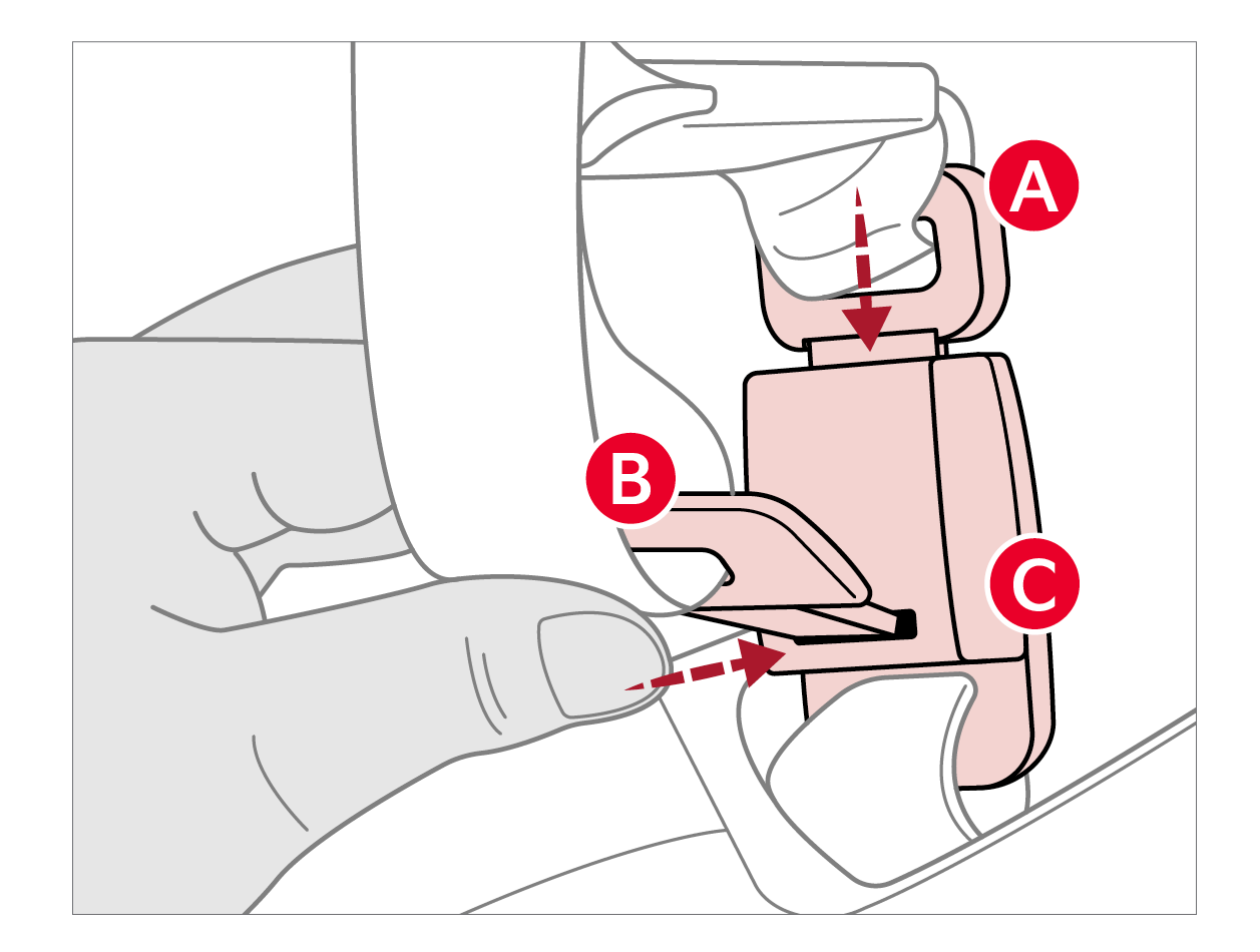 into the headliner, press the “release button” on the buckle by inserting the Seat Belt tongue plate