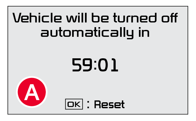 A warning on the Instrument Cluster LCD will appear stating the “Vehicle will be turned off automatically in…” and a chime will sound when the timer starts