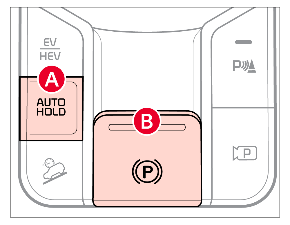 Auto Hold temporarily maintains the vehicle at a standstill even though the brake pedal is not depressed after the driver brings the vehicle to a complete stop by depressing the brake pedal. Auto Hold can be turned On/Off using the AUTO HOLD button