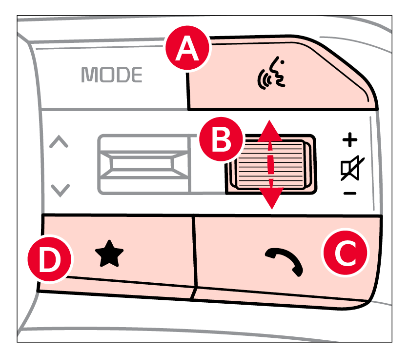 Call / End button: Press to receive/place/end calls. In vehicles with navigation, if no phone is paired, press button to pair a phone