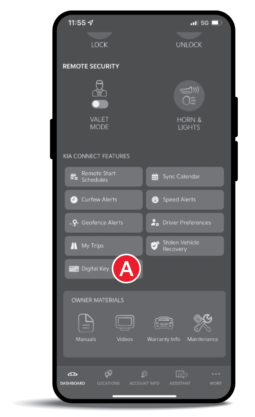 6. Open the Kia Access App and select DIGITAL KEY