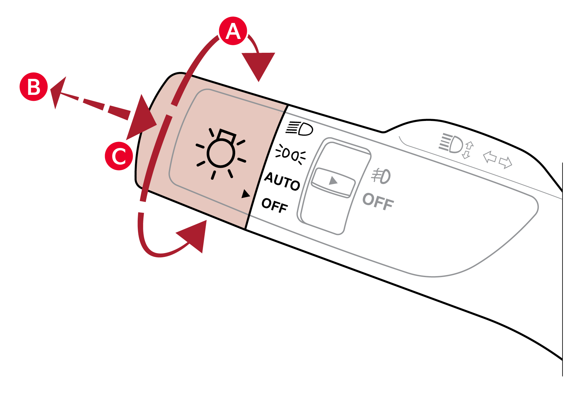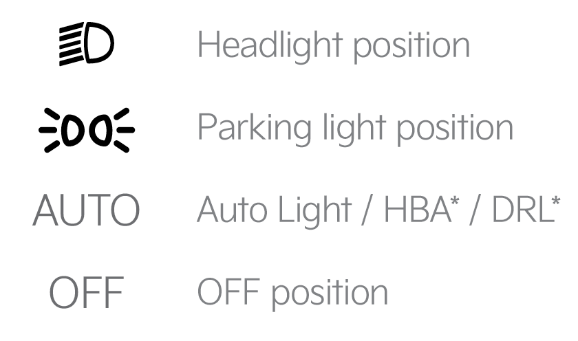 When the light switch is in the AUTO Light position, the tail lights and headlights will turn ON/OFF automatically depending on the amount of light outside the vehicle.