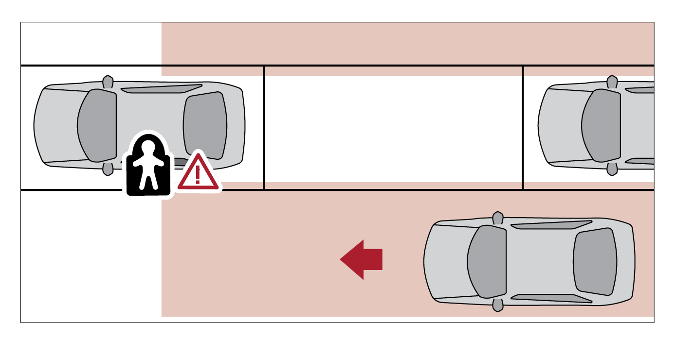 In addition, when the electronic child safety lock button is in the LOCK position and an approaching vehicle from the rear area is detected, the electronic child safety lock button will not unlock even if the driver presses the button to prevent the rear doors from opening.
