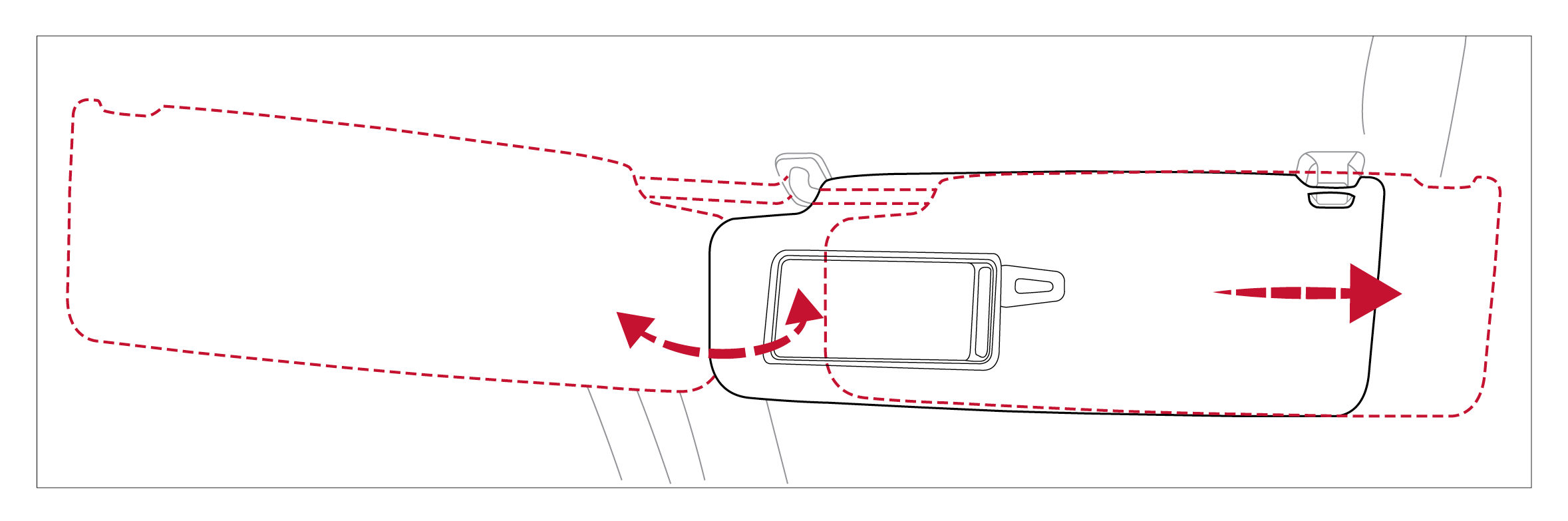 Use the Sun Visor to shield direct light through the front or side windows. Slide the Sun Visor out and adjust as needed.