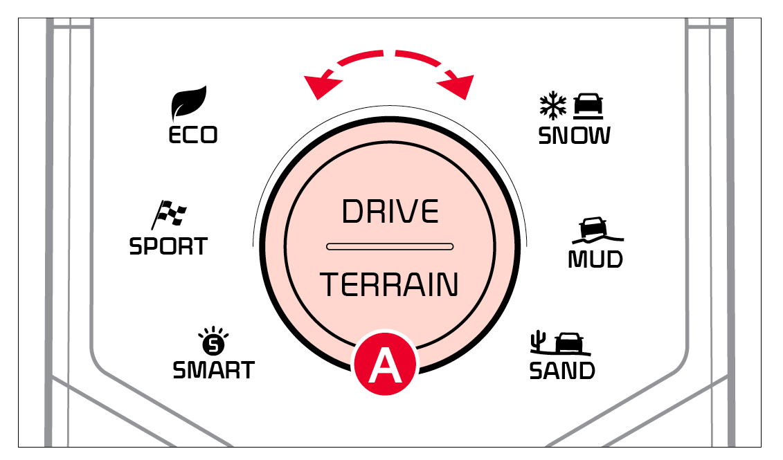 MUD mode: MUD mode is used to ensure safe driving by appropriately distributing the vehicle’s traction forces when driving on muddy, unpaved or rough roads
