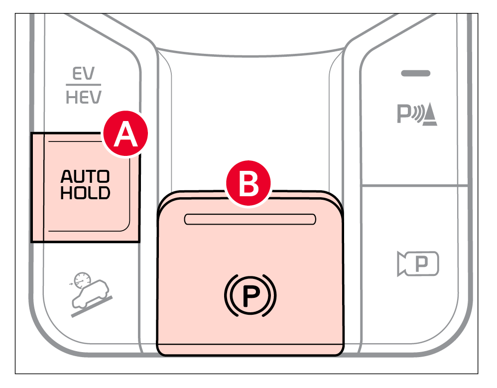 Auto Hold temporarily maintains the vehicle at a standstill even though the brake pedal is not depressed after the driver brings the vehicle to a complete stop by depressing the brake pedal. Auto Hold can be turned On/Off using the AUTO HOLD button