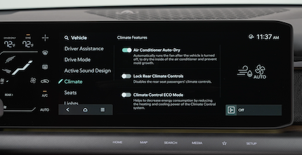 • When in AUTO mode, Air Flow mode and Fan Speed do not display on the Climate Control Display