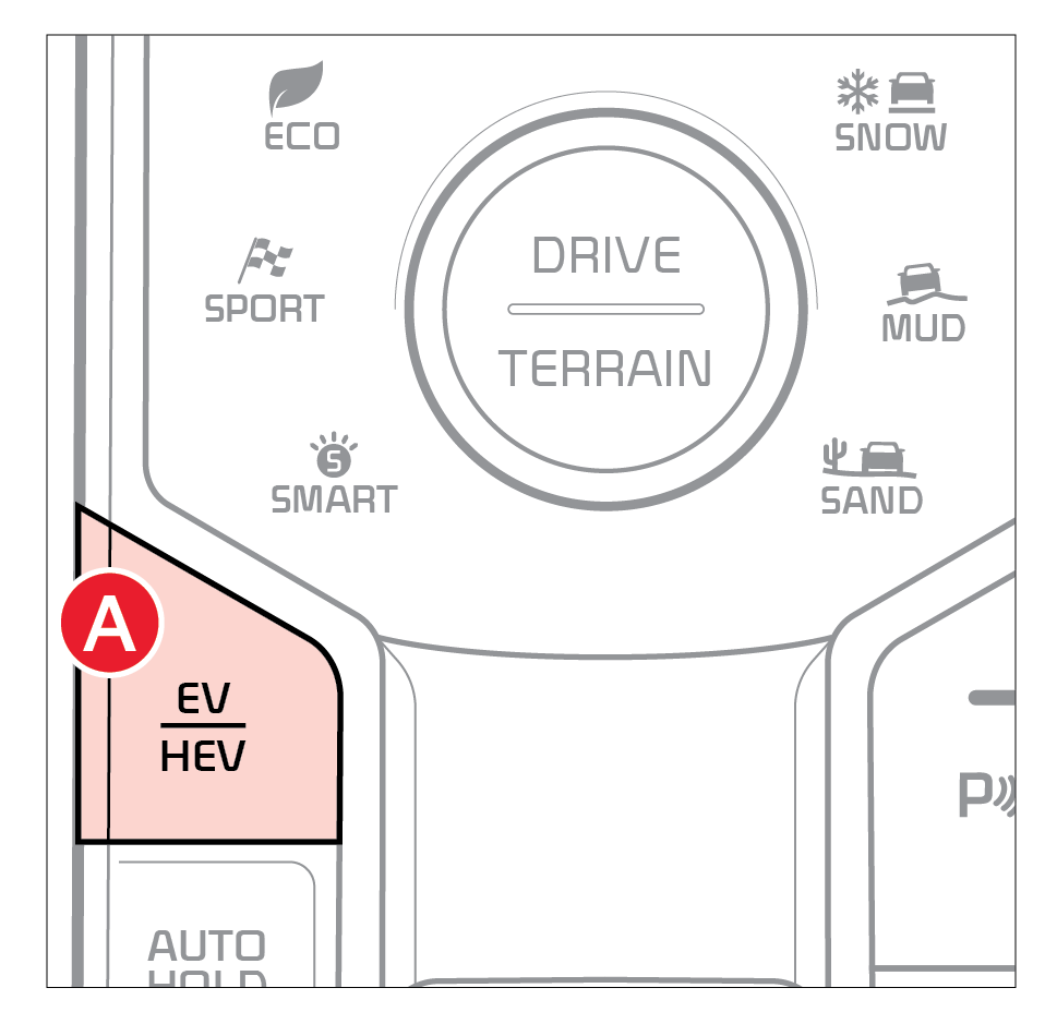 To change the Plug-In Hybrid Mode, press the EV/HEV button