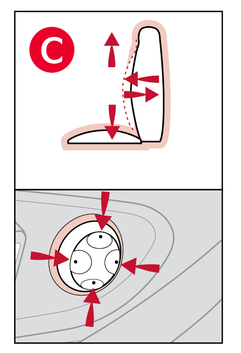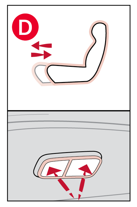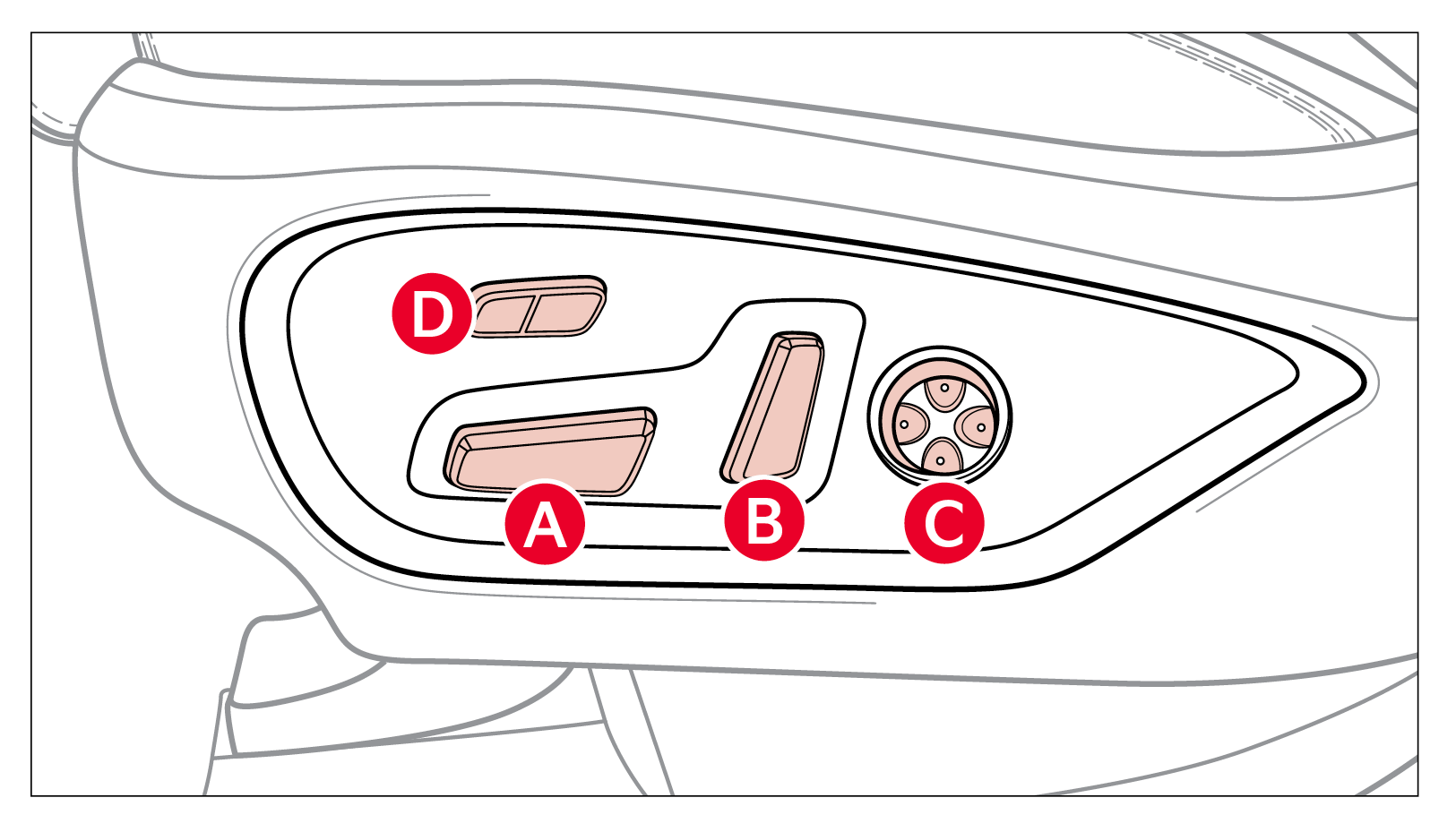 Move/Press the controls to adjust the Seat forward/backward, the Seat Cushion height, the Seatback recline, the Lumbar forward/backward or the Seat Cushion Extension*.