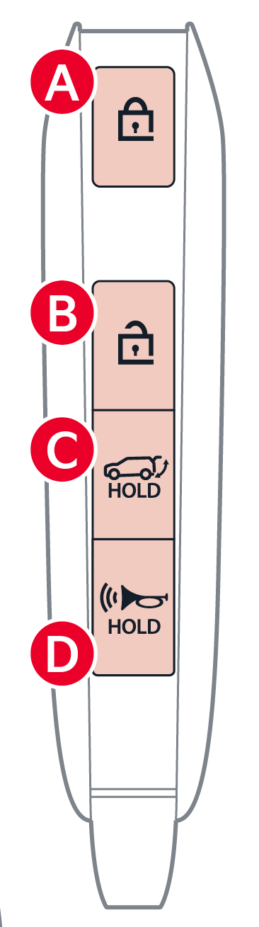 Press to unlock Driver's Door. Press twice within 4 seconds to unlock All Doors and Liftgate