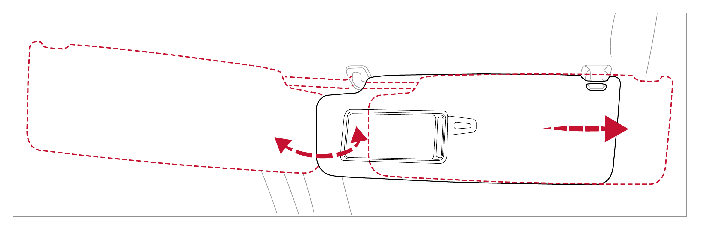 Use the Sun Visor to shield direct light through the front or side windows. Slide the Sun Visor out and adjust as needed.