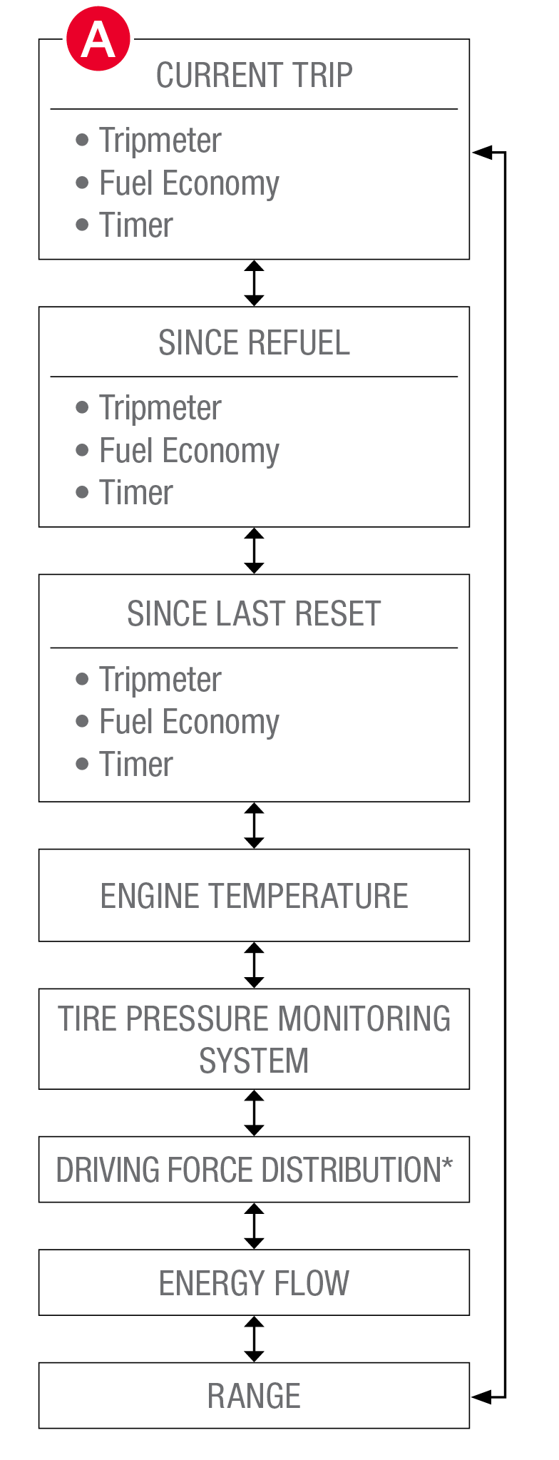 to enter. To cycle through and select the different screens (Fuel Economy, Trip A, Trip B), press the OK button