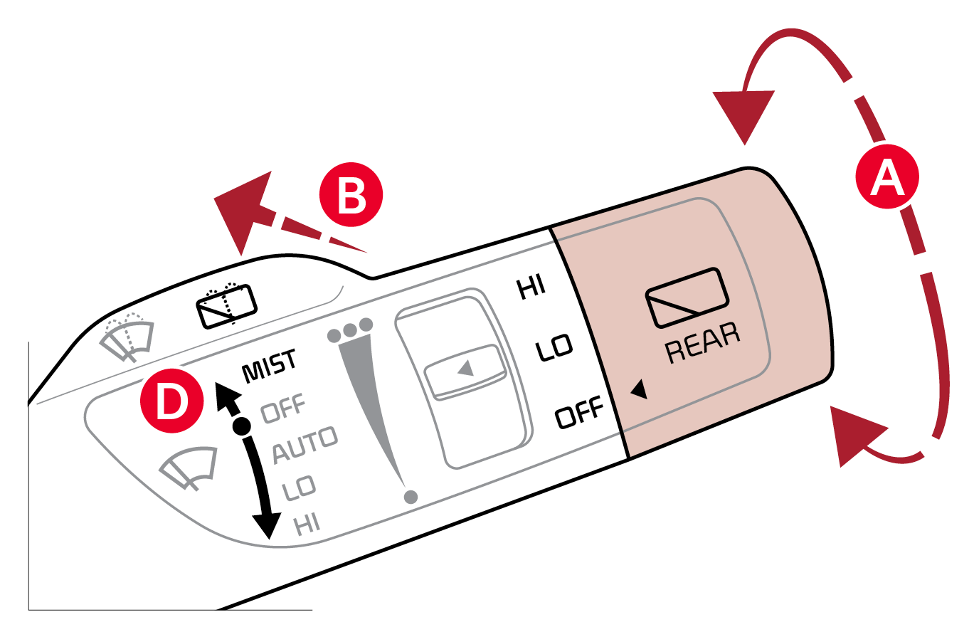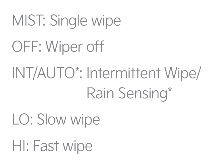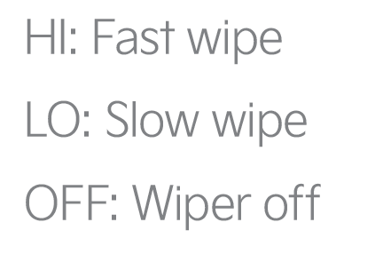 • On Rear Wipers, the intermittent wipe function is not adjustable. LO and HI sets wiper speed.