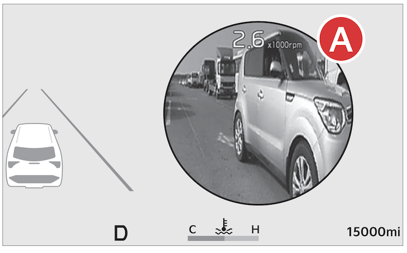 Blind-spot View Monitor is designed to display the rear and side of the vehicle blind spot areas in the Instrument Cluster