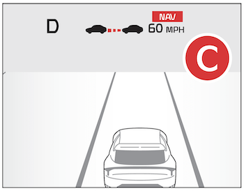 With SCC activated, the vehicle distance set, and the system detects a vehicle slowing or stopping, the system can bring the vehicle to a complete stop. When the vehicle ahead starts to move forward, SCC re-engages. If the vehicle ahead stops for more than 3 seconds, depress the accelerator pedal or operate the