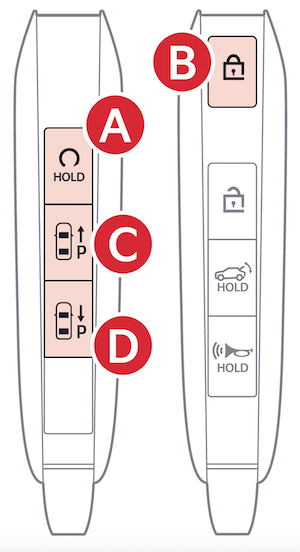 Press to unlock Driver’s Door. Press twice in 4 seconds to unlock All Doors