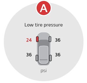 is displayed on the LCD screen in the Instrument Cluster when the tire(s) is underinflated.