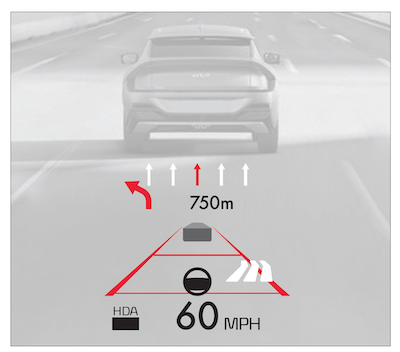 When engaged, HUD is a supplemental system. Do not rely solely on the system, always drive safely and pay attention to the driving conditions on the road.