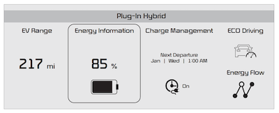 • Hybrid System Home Screen - EV Range, Energy Info, Charge Management, ECO Driving, Energy Flow