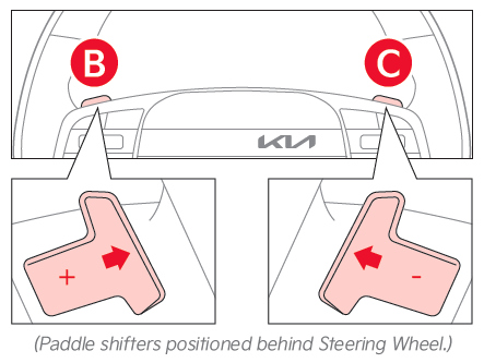 The regenerative braking system charges the battery when coasting or when you use the brakes to stop the vehicle. Use the paddle switches to adjust the regenerative braking level (from 0 to 3). The level will be displayed on the Instrument Cluster