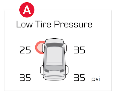 is displayed on the LCD screen in the Instrument Cluster when the tire(s) is underinflated.