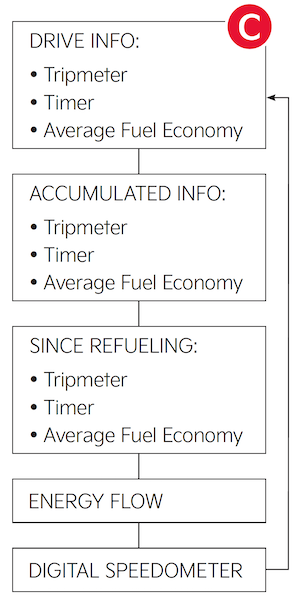To cycle through the different Instrument Cluster modes, press the Mode button![]()