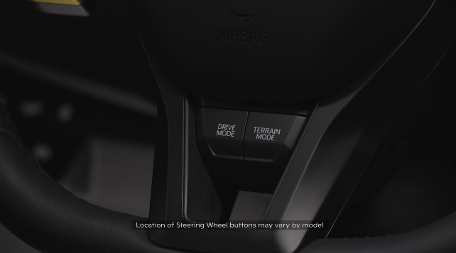 Terrain Mode activates the All-Wheel Drive (AWD) system to help the vehicle maintain its best driving performance by controlling the wheels, engine, transmission and braking to best suit the road conditions, such as snow, mud or sand. To turn on Terrain Mode, press the TERRAIN MODE button