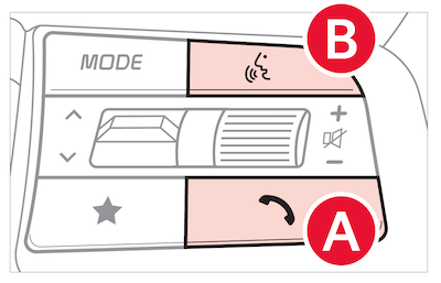 Voice Recognition button: Press to activate voice recognition/bring up menus/set destinations (if equipped with navigation) with minimal voice command prompts from the system. Press and hold to exit voice recognition