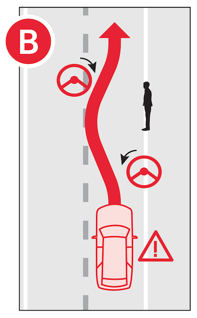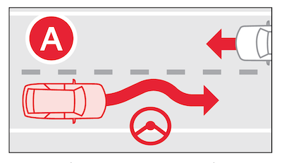 may help mitigate or avoid a collision with a vehicle, pedestrian cyclist, etc. in the same lane in front of you. When a risk of collision is detected, Evasive Steering Assist may warn you and assist your steering if you move the steering wheel.