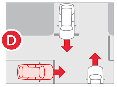 may help avoid a collision with oncoming vehicles detected on the left or right side when crossing an intersection by applying emergency braking.
