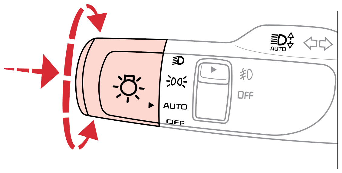 When the light switch is in the AUTO Light position, the tail lights and headlights will turn ON/OFF automatically, depending on the amount of light outside the vehicle.