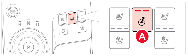 While the Engine Start/Stop button is in the ON position, press the Heated Steering Wheel button