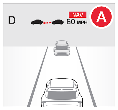 When SCC is on and operating, the vehicle is driving on limited/controlled access highways and NSCC is enabled and turned on, the NAV icon