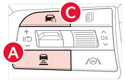 down to decrease the set vehicle speedTo pause or resume SCC operation: Press the pause/resume button ![]()