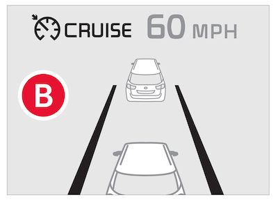 If the vehicle ahead stops for more than 3 seconds, resume driving by pressing the accelerator pedal, operating the (+) or (-) switch, or pressing the SCC RESUME ![]()