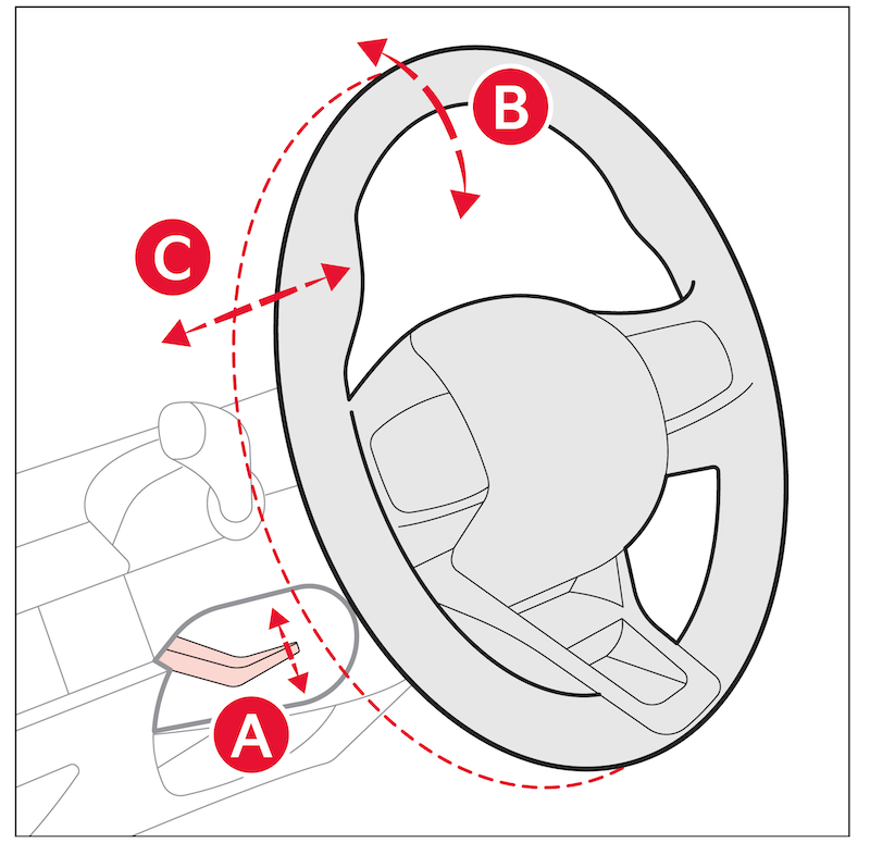 Do not adjust the steering wheel while driving as this may cause you to lose control of the vehicle.