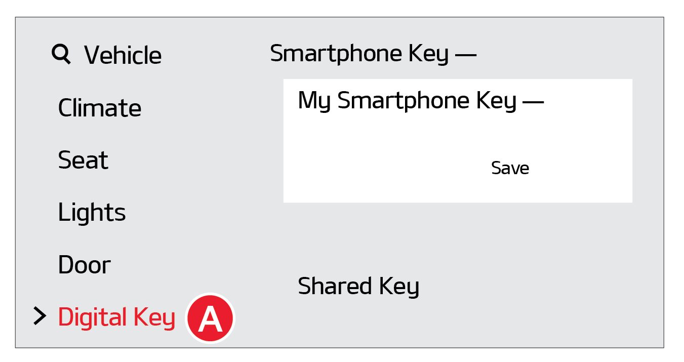 Go to the Vehicle Settings on the Infotainment System. Press SETUP, VEHICLE, DIGITAL KEYS, SMARTPHONE KEY, SMARTPHONE KEY.